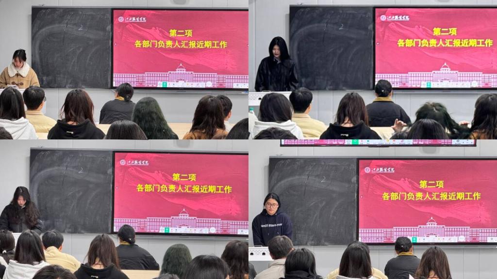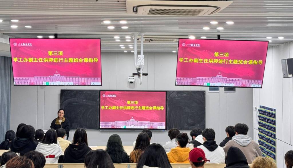 会议第三项,由学工办副主任洪婷对班长讲主题班会课进行了专项指导。洪婷从班会主题选择、流程设计、互动引导到效果评估等方面都给出了切实可行的建议,助力各班打造更具教育性与实效性的主题班会。洪婷强调,班委作为学院与学生之间的桥梁和纽带,要进一步增强责任感和使命感,积极发挥模范带头作用,提升班级凝聚力和向心力。