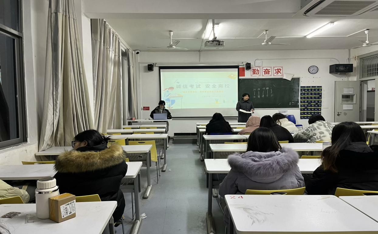 22级各班班会主题为“诚信考试,安全离校”。班长首先进行了诚信考试的教育,向同学们详细解读了学校的考试规则和考试纪律,使同学们深刻认识到诚信考试的重要性。在安全离校方面,班长向同学们介绍了离校前需要注意的事项。包括整理好个人物品,妥善保管贵重物品,避免丢失;清理宿舍卫生,消除安全隐患,做到人走断电、关窗锁门。同时,还提醒同学们要注意假期的安全,合理安排假期生活。