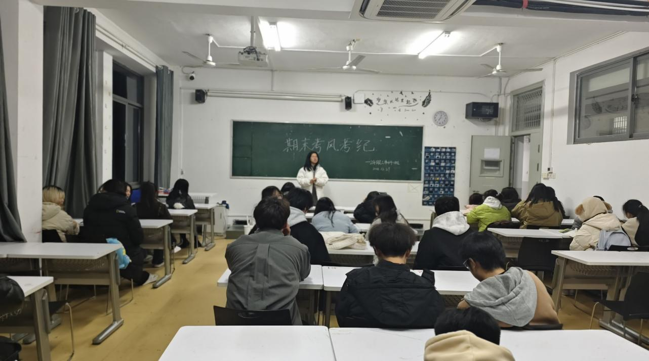 24级以“期末考风考纪”为主题召开班会。在本次考风考纪主题班会活动中,各班讲解了诚信考试的重要性,以及如何维护良好的考试环境。班长强调了考试作弊的后果,以及如何树立正确的考试态度和价值观。同学们纷纷表示,将自觉遵守考试纪律,维护公平竞争的学术环境。通过此次主题班会,同学们提高了对考风考纪的认识,增强了自我教育、自我约束、自我管理的意识和能力。