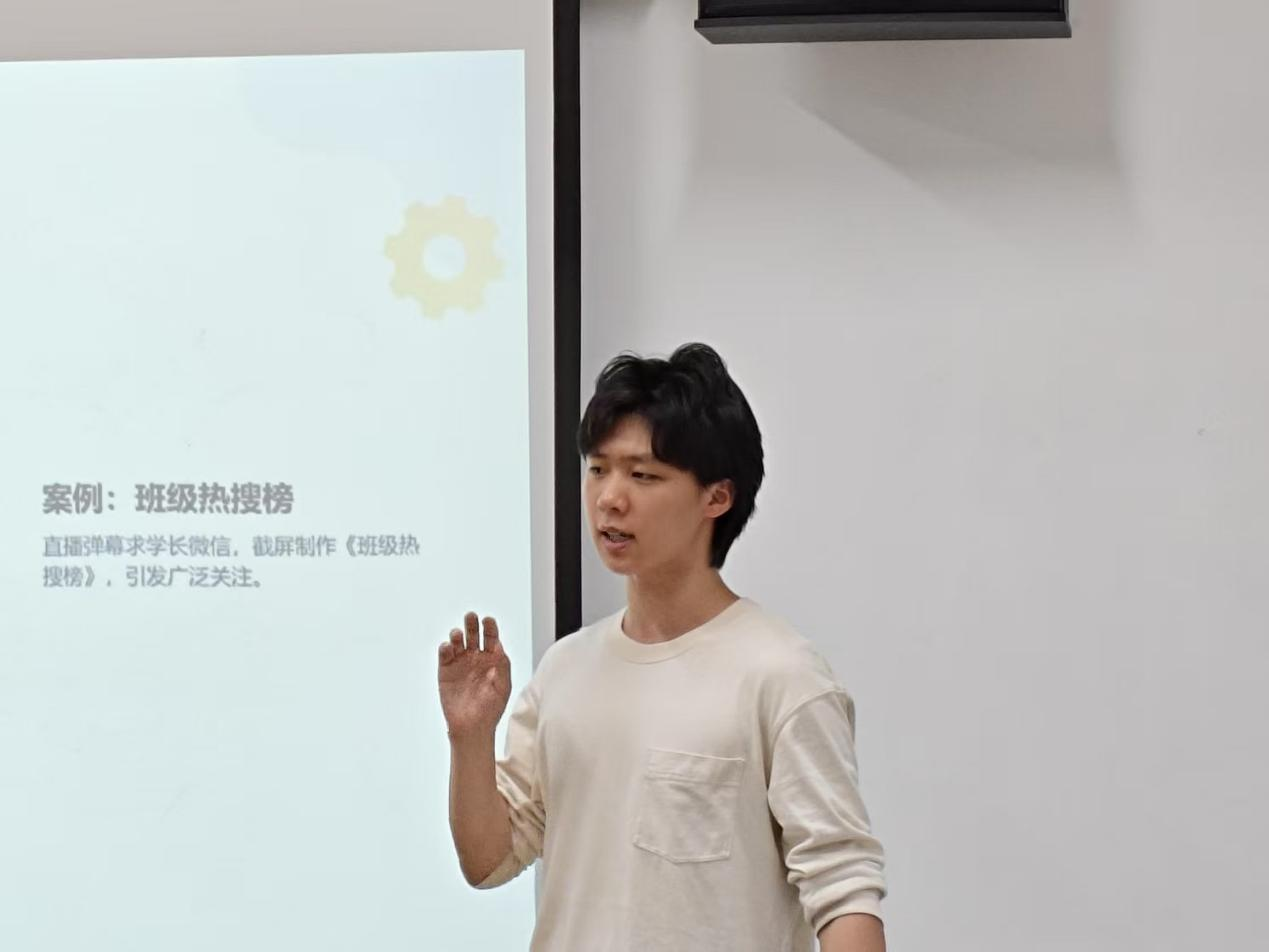 第四位是大数据学院班长代表周子涵进行经验分享。周子涵讲到,一个人的力量是有限的,发挥班级的力量就要把所有人联系起来,团结起来。团结是非常重要的,它能凝聚力量,让集体中的个体发挥出超越自身的能力,实现单靠一个人无法达成的目标,团结还能促进成员间的协作,提升工作和学习效率,增强集体的凝聚力和归属感,使大家在面对困难时相互支持,共同克服,推动集体不断发展进步,同时也让个体在集体中获得更多的安全感和成就感。