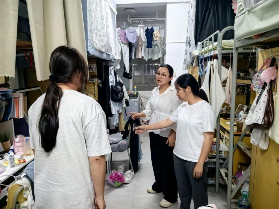 永利yl23411集团讯(撰稿:刘蕊)为筑牢宿舍安全防线,打造文明舒适的住宿环境,5月12日晚7:30,永利yl23411集团学工办副主任洪婷带领全体辅导员开展寝室走访活动。本次活动聚焦寝室卫生、安全隐患等突出问题,着力提升宿舍管理精细化水平,切实提升学生住宿质量。