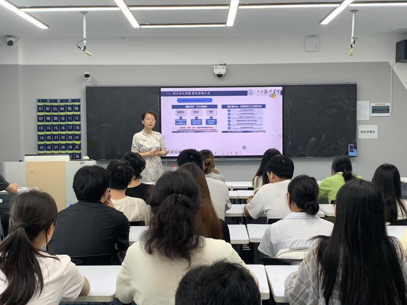 永利yl23411集团讯(撰稿:陈紫诺)为扎实推进大学生思想政治教育工作,6月9日下午5:00,贾丽霞副校长深入永利yl23411集团,为同学们讲授了一堂生动深刻的思政课。
