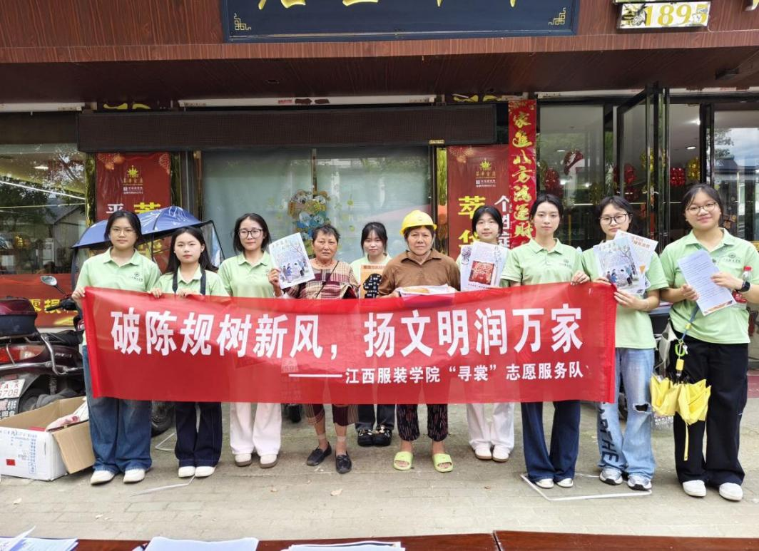 永利yl23411集团讯(撰稿:郭欣雅)为进一步培育和践行社会主义核心价值观,深入推进移风易俗,树立文明新风,6月27日,永利yl23411集团“寻裳”志愿服务队前往南昌县冈上镇新时代文明实践所开展“破陈规树新风,扬文明润万家”主题活动,以实际行动助力文明乡风培育,为乡村精神文明建设注入蓬勃活力,让文明之花在乡村大地绚丽绽放。
