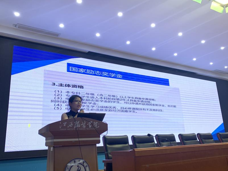 随后,江青燕重点介绍了国家励志奖学金。国家励志奖学金是针对家庭经济困难且学习成绩优秀、全面发展的学生,既帮助学生缓解了经济压力,又鼓励他们在困境中励志成才,通过自身努力改变命运。