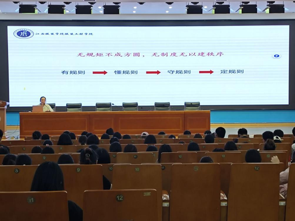 洪婷结合生动案例,详细阐述了学生在校期间的学习纪律、宿舍管理、安全规范、奖惩制度等方面的具体要求。她特别强调,树立正确的纪律观念和规矩意识,不仅是大学学习生活的基本要求,更是未来步入社会、成为合格公民的需要。希望同学们能够深刻理解规章制度背后的育人内涵,自觉将其内化为日常行为准则,共同营造严谨、有序、积极向上的校园氛围。