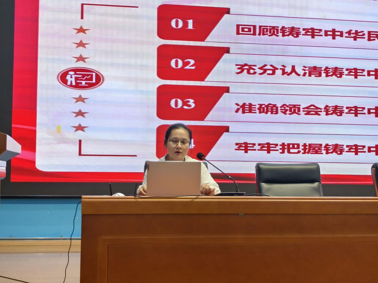 洪婷首先带大家回顾了铸牢中华民族共同体意识的提出背景与发展历程,从党的十八大开始,中国特色社会主义进入新时代,铸牢中华民族共同体意识也成为新时代党的民族工作的主线。这一重要理念是在新时代民族工作实践中逐步形成并不断丰富发展的,从提出到持续深化,始终紧扣时代脉搏,为民族工作指明了方向。洪婷接着带领同学们深入探讨了铸牢中华民族共同体意识的重大意义,铸牢中华民族共同体意识是维护国家统一的思想根基,是促进民族团结的精神纽带,是实现中华民族伟大复兴的强大动力,只有铸牢中华民族共同体意识,才能凝聚起各民族智慧。最后,洪婷强调要从加强理论宣传教育,推动各民族交往交流交融,促进各民族共同繁荣发展等方面发力,将铸牢中华民族共同体意识融入日常工作与生活,以实际行动推动各民族共同团结奋斗,共同繁荣发展。