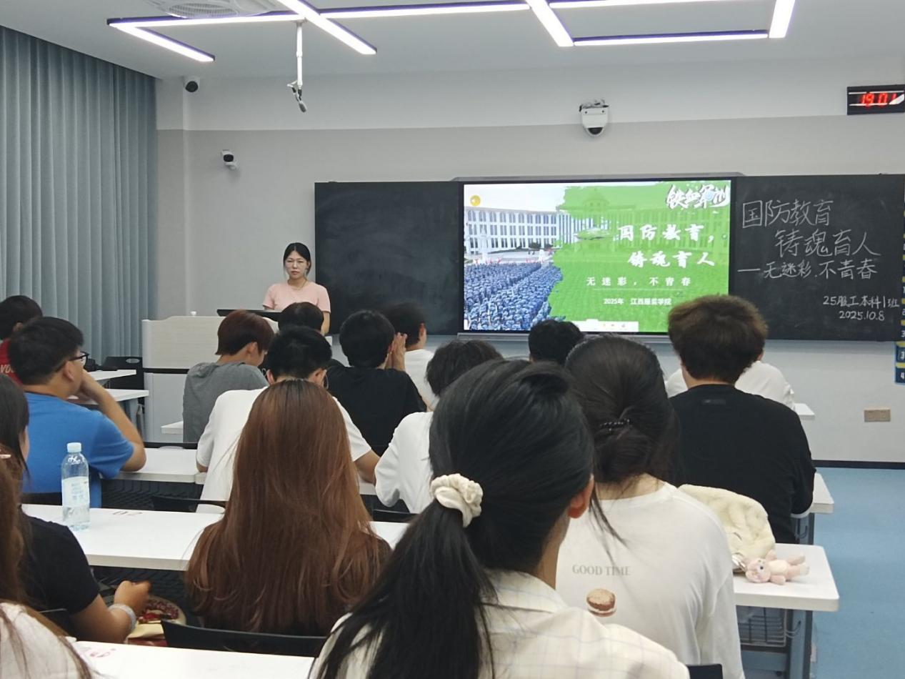 25级各班级以“国防教育,铸魂育人——无迷彩,不青春”为主题展开班会。各班班长首先和大家共同观看了军训动员视频。随后从三方面展开:阐述军训意义,结合黄埔军校案例及学长学姐的分享,说明其能锻炼意志、培养团结与爱国情怀;明确了具体要求,包括快速集合、遵守纪律等;讲解了注意事项,涵盖请假、着装、训练前准备、中暑的处理及军训评比等内容。最后,班长鼓励大家携手迎接军训挑战,留下宝贵的青春回忆。