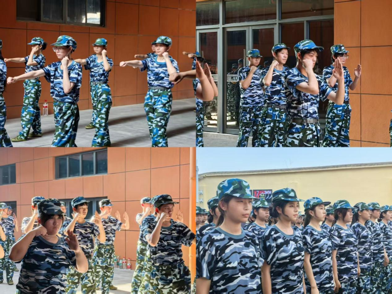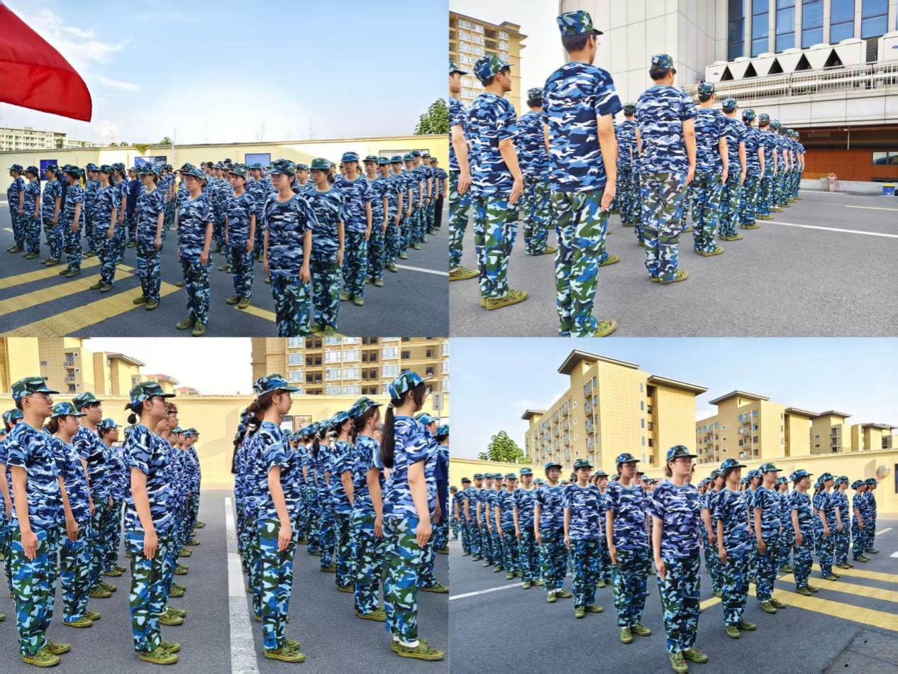 训练场的环境随时间流逝而更加生动。正午时分,阳光变得更炽热,地面的温度逐渐攀升,空气里弥漫着汗水与青草混合的味道。新生们身着迷彩服,站军姿时,如挺拔的白杨,帽檐下的眼神格外坚定,尽管烈日炎炎,新生们的脸颊被晒得发红,汗水流过他们的脸庞,却始终保持着双肩后张、收腹挺胸的姿势,连指尖的角度都未曾偏移。偶尔有微风拂过,掀起衣角,却吹不散方阵里的专注与执着;学习军体拳法时,教官站在队前示范,弓步冲拳时小臂绷直带风,格挡时手臂稳如盾,边做边喊“出拳贴腰、踢腿绷脚”。新生跟着比画,学习几遍后动作渐连贯,“杀”的喊叫声愈发响亮,拳风里满是认真。