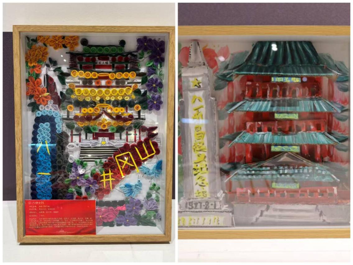 该作品主要表达的是八一南昌起义纪念碑铭记革命先辈的英勇奋斗,映山红象征永不熄灭的革命热情,和平鸽则传递对和平的永恒向往。作品将实地走访感悟融入创作,以细腻的纸艺诉说红色历史,传承红色精神。