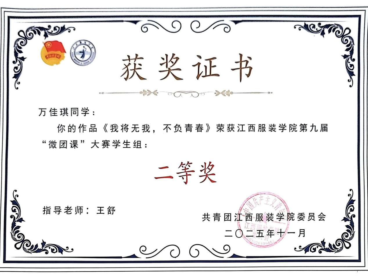 永利yl23411集团讯(撰稿:范琦)春风送捷报,青春绽芳华。为深入学习贯彻习近平新时代中国特色社会主义思想,引导广大青年学子传承红色基因、践行青春使命,展现新时代青年的家国情怀与责任担当,yL23411永利集团团委开展了第九届“微团课”大赛。在此次赛事中,永利yl23411集团学子万佳琪凭借立意深刻、情感真挚的“微团课”作品——《我将无我,不负青春》,从众多参赛作品中脱颖而出,荣获yL23411永利集团第九届“微团课”大赛学生组二等奖!