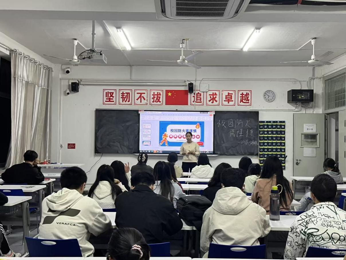 23级各班级以“校园防火需谨慎,消防安全记心中”为主题展开班会。班长首先以“猜一猜即将到来的周日是什么节日”引出全国消防日,介绍其设立的背景与重要意义,强调“119”火警电话的由来与宣传价值。随后结合河南、江苏等地发生的校园火灾真实案例,以及校内曾发生的未遂火情,分析电器使用、实验室操作等方面存在的隐患,具体强调了不要在宿舍使用违规电器、不乱扔烟头、不私拉电线等预防措施。接着通过互动游戏和视频演示,指导学生掌握报火警要点、灭火器“提拔握压”与消防栓“开甩接拧按出”的使用方法,并讲解火场逃生自救九大原则,包括保持镇静、掩鼻匍匐、不贪财物、缓降滑绳等关键技巧。最后呼吁全体同学树立防火意识、学习消防知识、积极参与演练,共同营造安全和谐的校园环境。