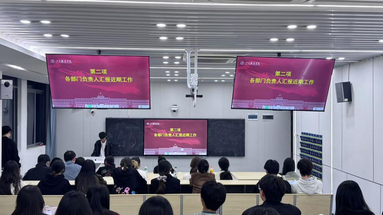 会议第二项,各部门负责人强调了近期的重点工作。一是班长沙龙参与情况,强调了班长沙龙的重要性,以“班长团支书履职能力提升”为核心,助力其发挥“主心骨”作用,提升统筹班级事务与凝聚集体力量的能力;二是针对班级卫生管理优化,提出“班长牵头统筹、团支书协同监督、班委分区负责、同学全员参与”模式,推动卫生工作常态化、规范化,后续将同步推进卫生情况周通报机制。