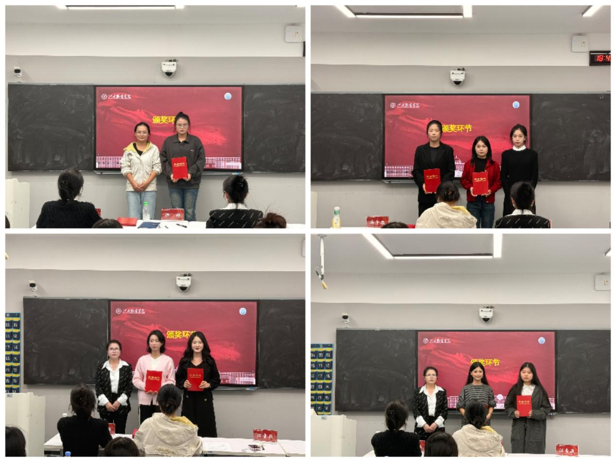 经过评审,最终结果正式揭晓。邓书敏凭借出色的表现脱颖而出,荣获本次活动一等奖;刘越溪、聂晗姝以扎实的实力和亮眼的发挥斩获二等奖;游怡馨、黄家馨、张钰凭借稳定的表现赢得三等奖;沈金萍、曹怡、程梦怡、江婕妤四位同学在活动中展现出良好的综合素养,获评优秀奖。