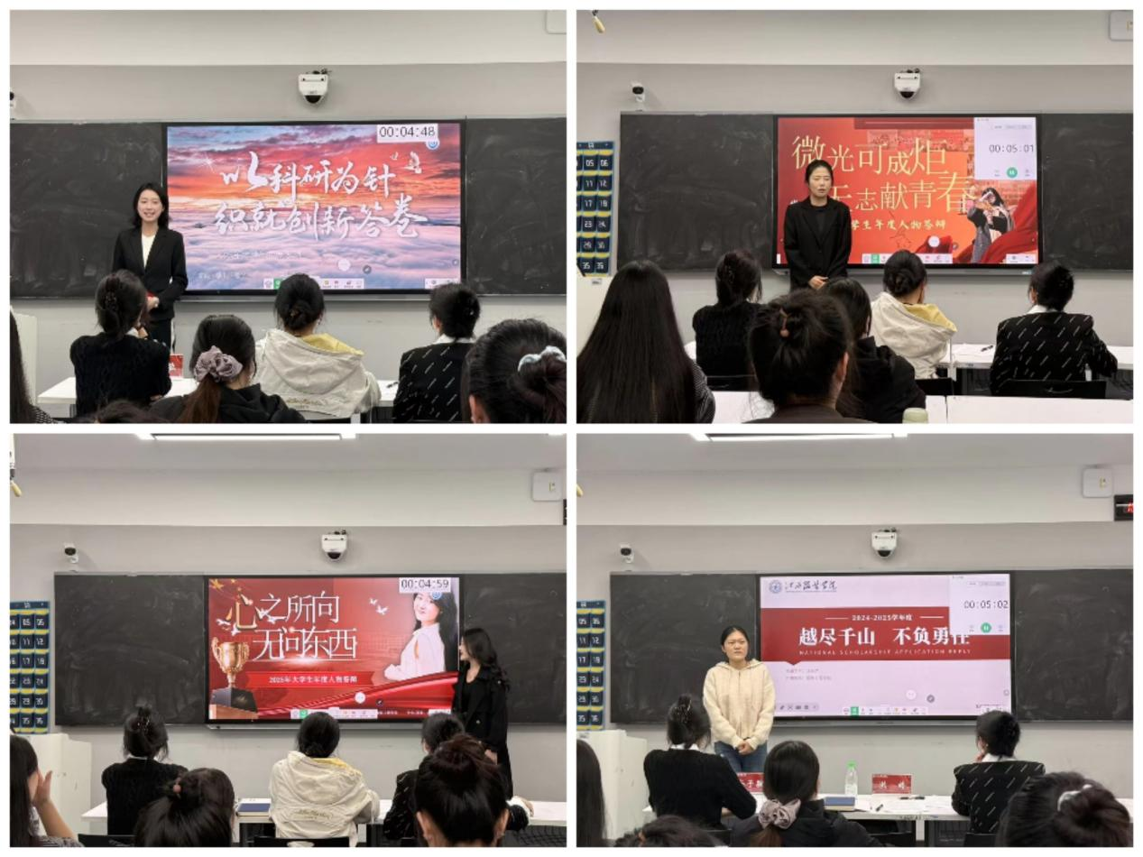 评选过程中,18位参赛选手依次登台,围绕思想成长、学业成绩、社会实践、志愿服务与创新创业等维度进行个人陈述。他们结合精心准备的PPT,以真实的案例与详实的数据,生动展现了在专业学习中的专注、志愿服务中的奉献、创新实践中的探索以及思想追求上的进步。一段段奋斗历程不仅勾勒出每位选手的成长轨迹,也集中体现了永利yl23411集团学子笃行不怠、追求卓越的优良学风,赢得了现场师生的阵阵掌声。