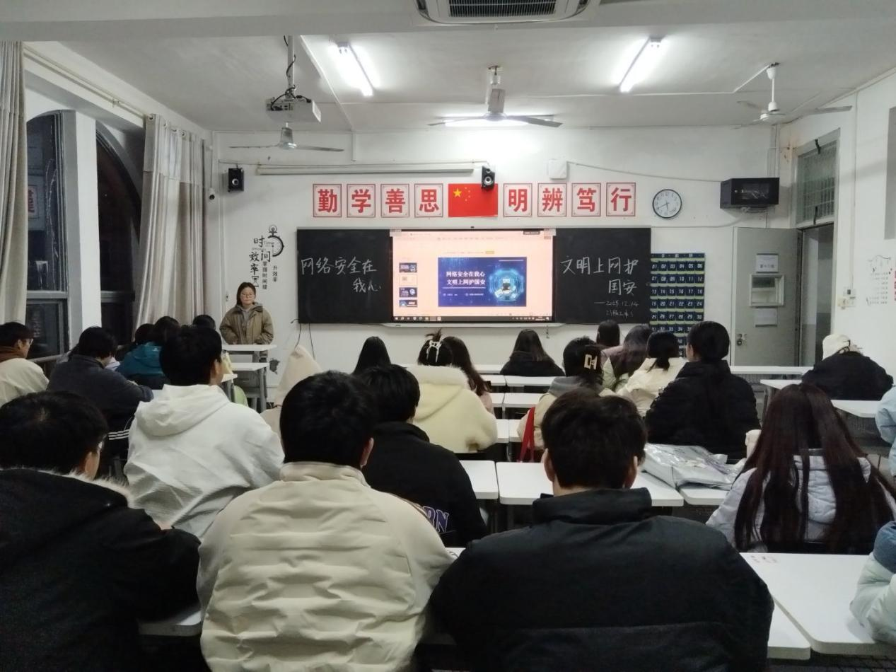 23级围绕“网络安全在我心,文明上网护国安”,深入阐释网络安全与国家安全的紧密联系,系统梳理网络行为法律红线与风险后果,通过“我是信息守护员”知识竞答、案例研讨等形式,结合学校周边特殊环境,强化学生的保密意识与网络安全防护能力。
