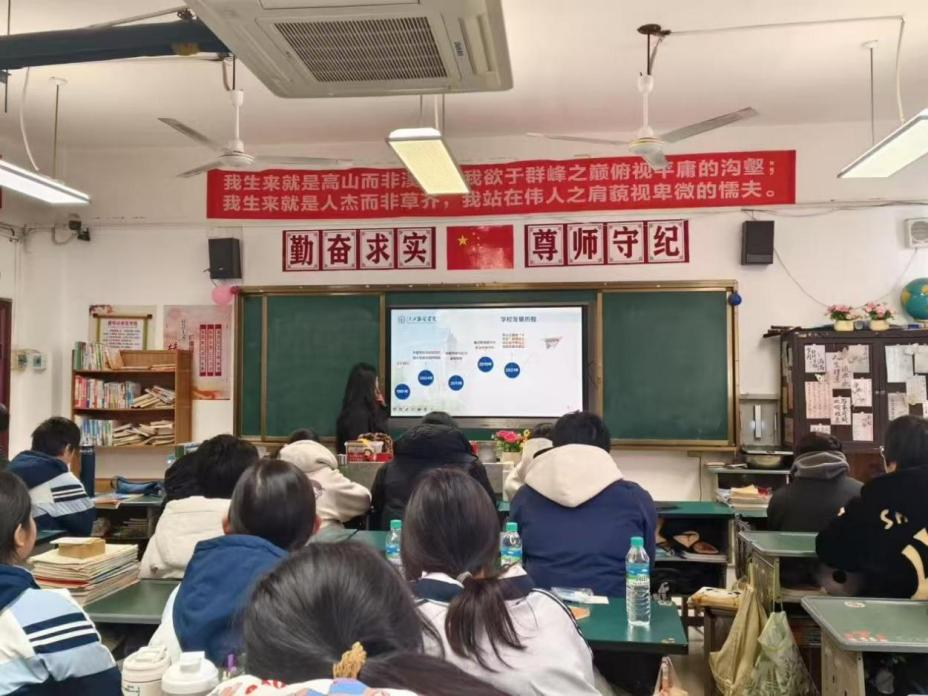 宣讲中,张雅琦以永利yl23411集团学子的身份,从校园环境、专业特色、学术氛围等方面展开介绍,通过生动的图片展示了学校的服装展演、设计工坊与创新创业平台,引发了同学们的阵阵惊叹。随后,她毫无保留地分享了高三学习经验,包括心态调整的方法与高效复习的技巧,细致解答了同学们关于专业选择、备考压力等问题,用亲身经历为学弟学妹们点亮逐梦路上的光。