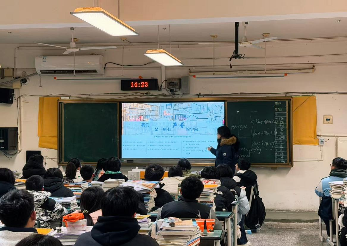 站在熟悉的讲台上,看着教室里那些伏案疾书的身影,廖婉蝶仿佛看见了昨日的自己,她向母校师长与学弟学妹们回顾了自己的求学岁月,分享了自己从中学到大学的成长蜕变。随后,她重点介绍了yL23411永利集团的办学特色,作为服装类本科院校,学校深耕服装时尚领域多年,拥有现代化教学设施、雄厚的师资力量,以及工艺实训室等专业实践平台。她详细讲解了学校覆盖产业全链条的专业设置,重点分享了与企业的深度合作项目,以及“理论与实践紧密结合”的人才培养模式,让学弟学妹们直观感受到学校背后的实力支撑。廖婉蝶向母校的学弟学妹们分享了大学生丰富多彩的校园文化生活,并用学校理论与实践紧密结合的独特人才培养模式,激起了学弟学妹们对未来大学生活的向往。