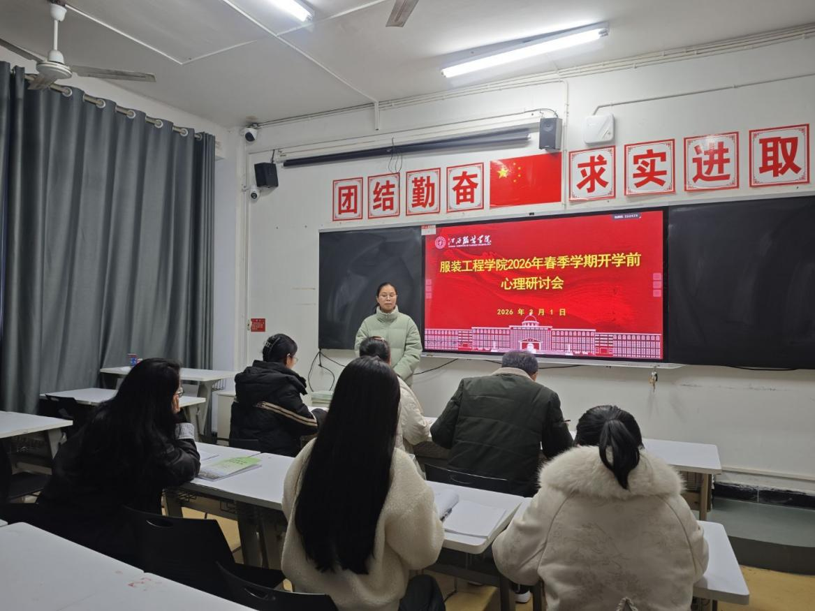 为切实做好春季学期开学期间学生心理健康教育工作,精准把握学生心理动态,筑牢校园心理安全防线,服装工程学院于3月1日召开2026年春季学期开学前心理健康工作研讨会。学院党委书记彭波、副书记张敬玲,学工办副主任洪婷,全体辅导员、班主任及心理工作负责人参加了会议,会议围绕学院相关学生的情况进行了专题研判、精准部署。