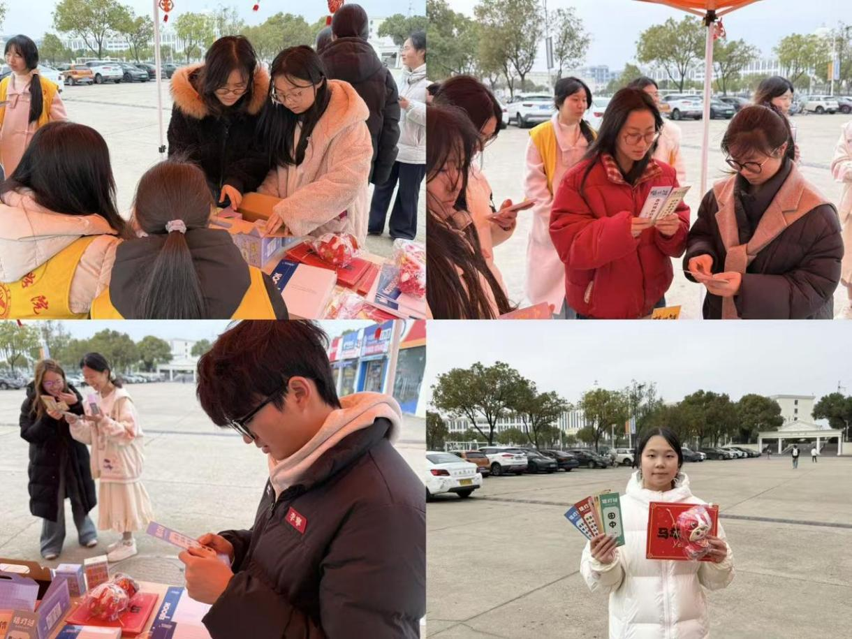 服装工程学院的志愿者们早早到位,热情地招呼着过往师生,邀请大家驻足参与猜灯谜活动。同学们纷纷被吸引,或独自凝神思索,或三五成群热烈讨论解题思路,不时传出恍然大悟的欢笑声。大家将猜出的谜底逐一核对,再按规则有序兑换对应奖品,马年玩偶、镂空花灯、多肉积木等好礼接连送出。凭智慧赢得的每一份奖品,都让同学们的脸上洋溢着满满的成就感,也为这个元宵节增添了别样的温暖与欢喜。