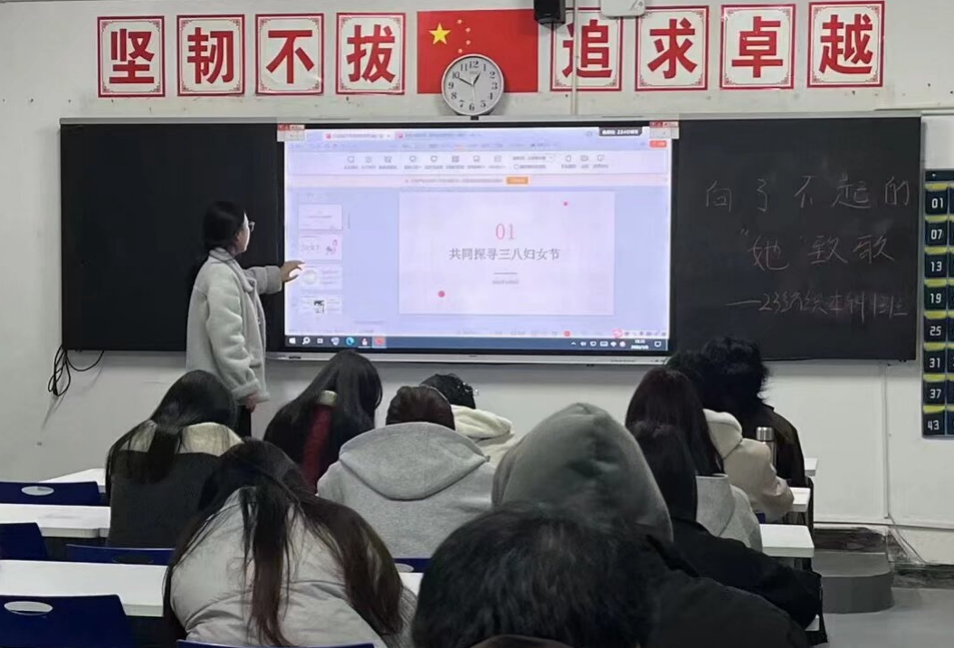 23级学子以“向了不起的‘她’致敬”为主题,在三八妇女节之际,重温女性奋斗历史,学习巾帼榜样事迹。从革命年代的巾帼英雄到新时代的女性科技工作者,从默默奉献的母亲到拼搏进取的女同学,大家通过故事分享、诗歌朗诵等形式,表达对女性的敬意与感恩。男生们纷纷表示要尊重女性、理解女性,女生们则表示要以榜样为力量,坚定理想、奋勇前行,在未来的学习和工作中展现巾帼风采。