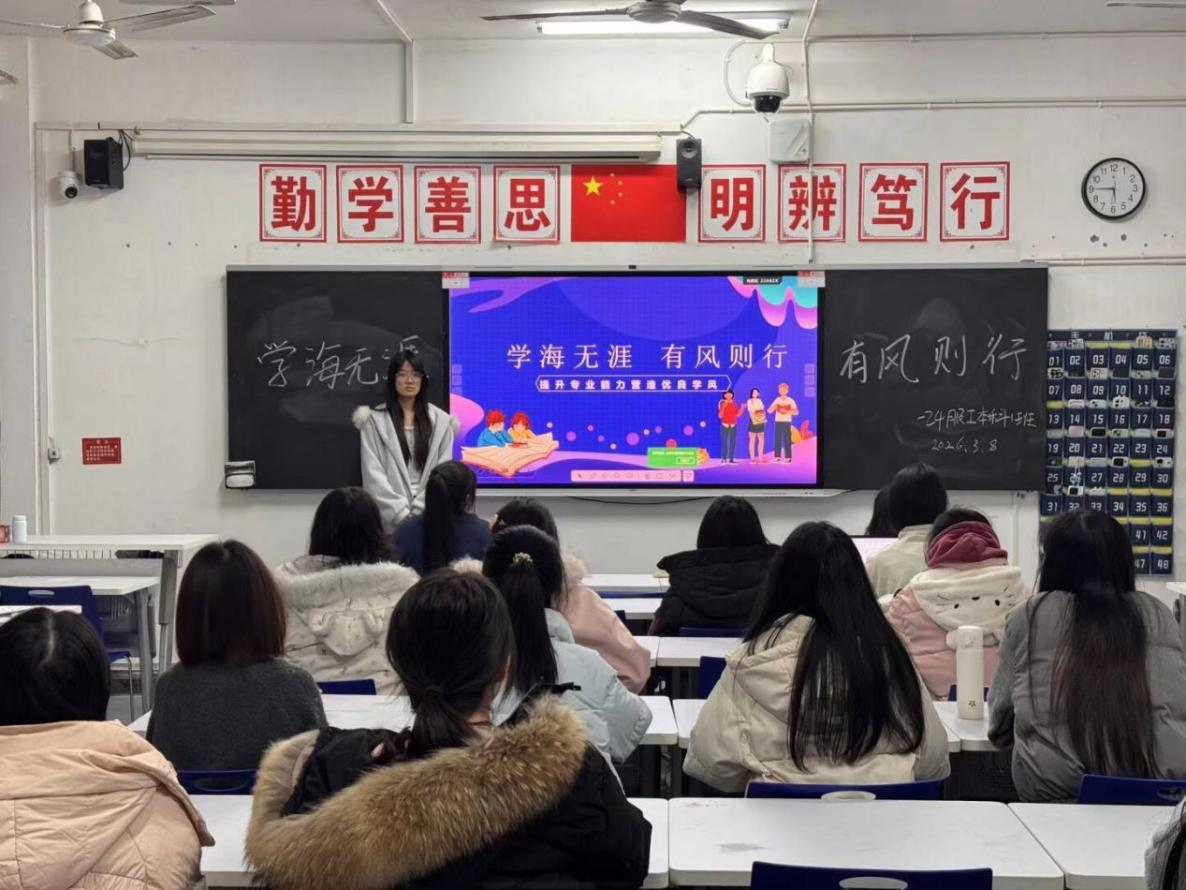 24级各班级聚焦“学海无涯,有风则行”,围绕学风建设展开深度反思与交流。在班主任和优秀学生代表的带动下,同学们结合上学期学习情况,认真剖析自身不足,明确新学期学习目标。大家从个人自律、班级共建、校园参与等方面梳理了学习方法,积极分享高效的学习经验,共同探讨如何营造勤学善思、互助共进的优良班风。班会上还发起了“学风建设我先行”倡议签名活动,同学们踊跃响应,表示要以实际行动践行终身学习理念。