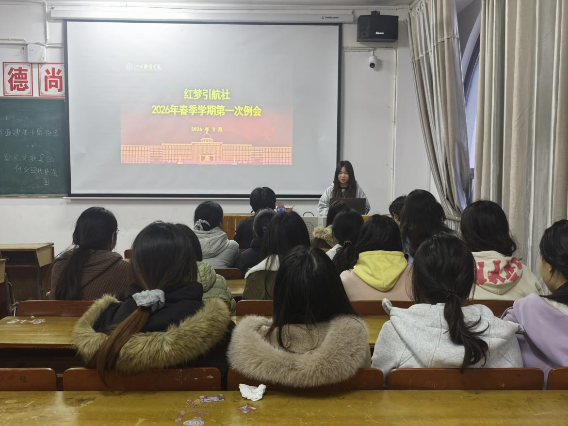 最后,黄烨平表示,希望大家在“红梦”引航社这个集体里,每个人都能卸下防备,做最真实的自己,想说的话大胆说,想做的事勇敢做。在这里找到归属感,找到一群可以一起为同一个目标努力的人。2026年的春天已经到来,“红梦”引航社的航船也已起航。愿大家都有一马当先的勇气,也有携手同行的默契。在这个学期,遇见更好的自己,创造更优秀的“红梦”引航社。
