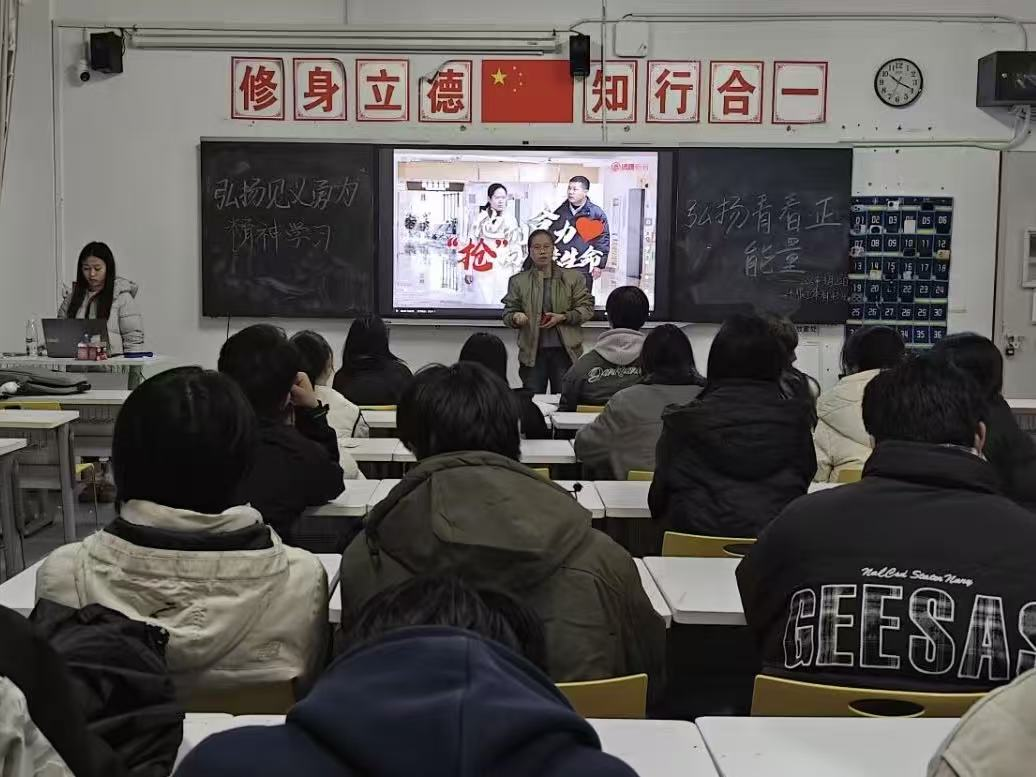 活动中,各班级组织学生集中观看了由南昌发布推送的见义勇为事迹的视频。视频讲述了两个感人至深的故事:2023年9月16日,南昌市民李峰武在赣江边散步时,听到三名初中生呼救,毫不犹豫跳入江中救人,最终与落水学生一同被江水漩涡吞没,献出了宝贵的生命。李峰武生前尊重老人、热情待人、乐于助人,他的英勇壮举诠释了舍己为人的崇高精神。