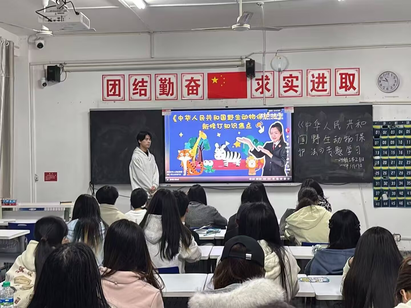本次专题学习紧扣学校平安建设宣传重点,围绕生态环境保护宣传要求展开。学习过程中,班主任通过结合PPT讲解、案例分析等形式,对《中华人民共和国野生动物保护法》的核心条款进行细致解读,重点阐释了野生动物保护的范围、禁止性行为、法律责任等关键内容。同时,结合近期各地查处的非法捕猎、交易野生动物典型案例,剖析了非法猎杀、售卖野生动物及破坏栖息地行为带来的生态危害和严厉法律后果,让同学们直观认识到野生动物保护的重要性和紧迫性。