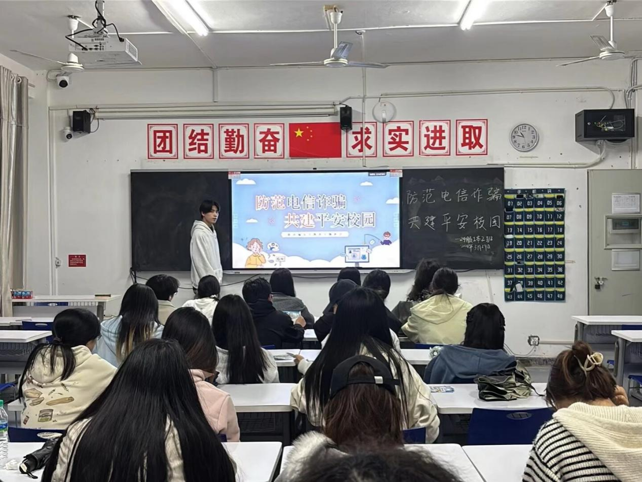 24级班会以“防范电信诈骗,共建平安校园”为主题,以普及反诈知识、提升防范能力为重点,推动反诈安全意识与校园日常安全深度融合。各班聚焦电信诈骗的隐蔽性与危害性,通过案例剖析、知识讲解、互动问答等形式,解读冒充客服、兼职刷单、校园贷等常见诈骗手段的作案特征,提醒同学们坚守“不轻信、不透露、不转账”的核心原则。班会倡导将反诈意识转化为日常行动,牢记防骗准则、主动宣传反诈知识,筑牢自身与身边人的财产安全防线。