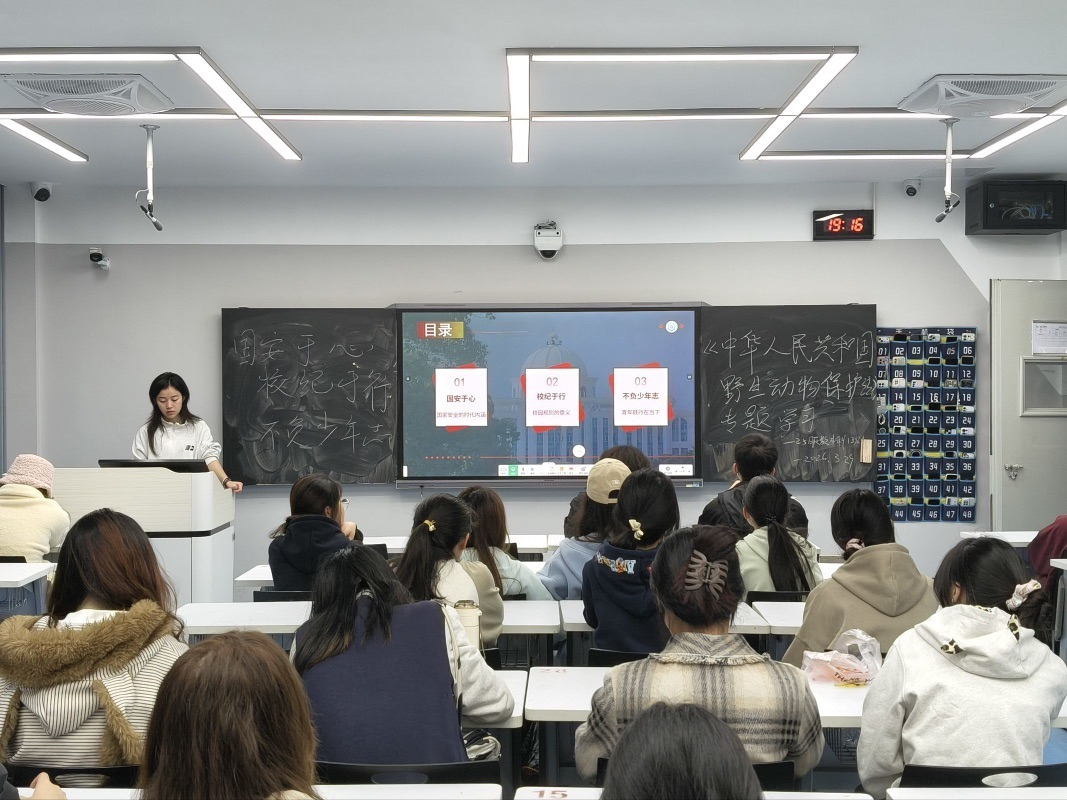 25级以“国安于心,校纪于行,不负少年志”为主题,立足大一新生适应校园生活、树立价值观念与筑牢成长根基的需求,突出国家安全认知与校规校纪践行的深度融合。各班级通过普及总体国家安全观、解读国家安全16个涵盖领域,结合境外间谍渗透、兼职泄密等真实案例开展警示教育,破除“国家安全与己无关”的认知误区。班主任带领同学们重温“勤信博雅”校训,结合课堂、宿舍、食堂等日常场景讲解校规校纪,明晰校规校纪对成长发展的保障作用。围绕“国家安全与青年责任”“校规践行与个人发展”展开交流,引导学生明确大一阶段筑牢安全与规则根基的关键意义。班会倡议新生将家国情怀与个人成长紧密结合,严守校规校纪,强化反诈意识,以青春之姿践行少年志向。