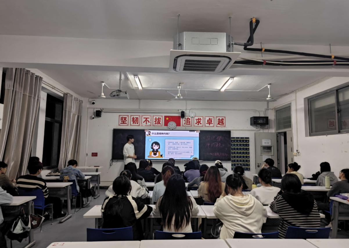 23级各班级以“拒绝精神内耗,解锁情绪松弛感修炼手册”为主题,立足大三学生升学、实习、就业等阶段困境,突出情绪管理与心理调适对成长发展的支撑作用。各班通过数据与案例拆解过度思考、自我否定、拖延逃避等内耗特征,引导同学们完成自我觉察;通过设置“情绪盲盒”分享、小组讨论等互动环节,在倾诉中打破“独自内耗”的孤岛感。针对内耗问题,系统梳理了情绪松弛感的修炼方法:聚焦当下拆解目标、拒绝完美主义、通过运动冥想等方式舒缓压力,强调关注自我成长而非他人评价。班会还同步融入反诈宣传,帮助同学们掌握情绪调节技巧,以更松弛、坚定的心态奔赴学业与成长新征程。