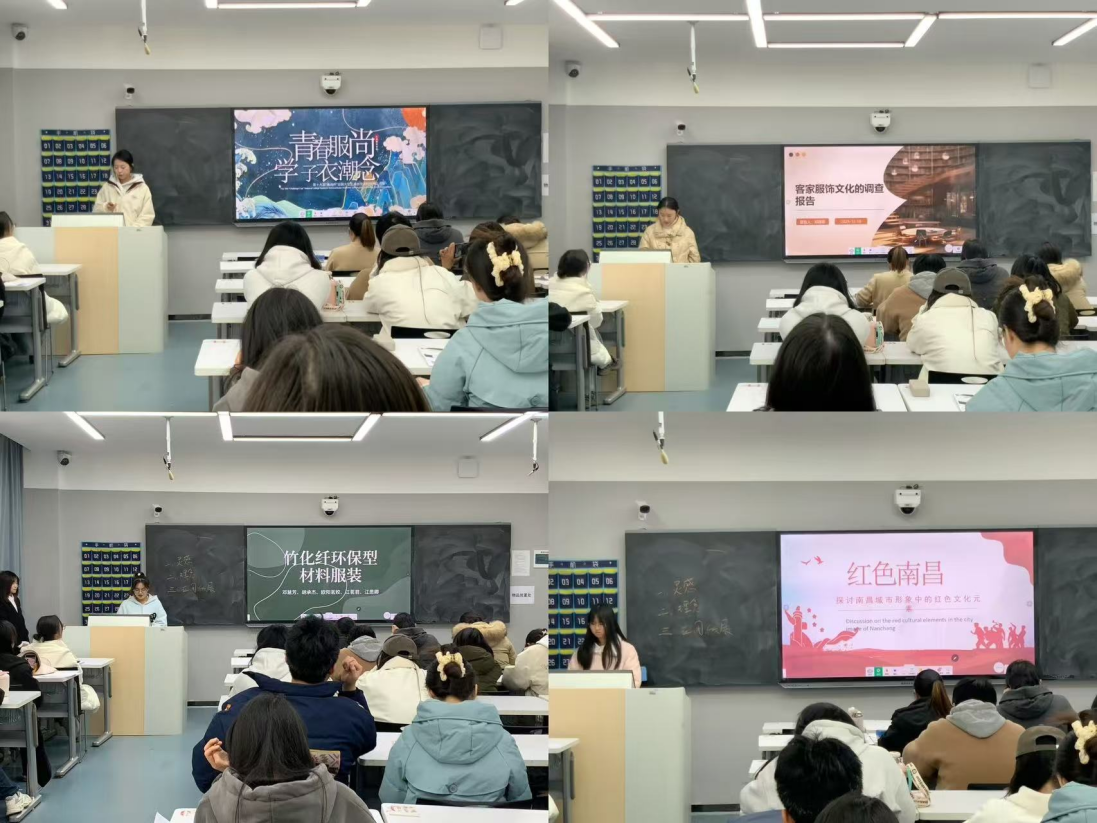 比赛现场,参赛团队的代表们通过精心制作的PPT和条理清晰的演讲,展示了各自团队项目的独特优势。这些项目不仅创意满满,而且视角广泛,涵盖了服装工程前沿领域和社会现实问题的创新解决方案,如功能性面料研发、多功能运动旗袍设计等。