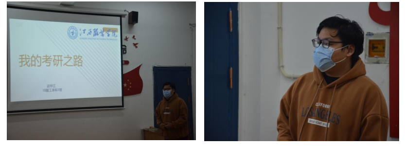 18服工本科1班谈华江的主题是“一研为定”。他认为,就业形势的严峻在某种程度上强化了一些毕业生的升学意愿和求稳的心态。并且应届毕业生考研可以享受相关国家优惠政策,让自己在未来的道路能更好。他从为什么要考研如何复习考研、如何选择专业和如何选择学校四个方面展开,阐明毕业生考研的意义。
