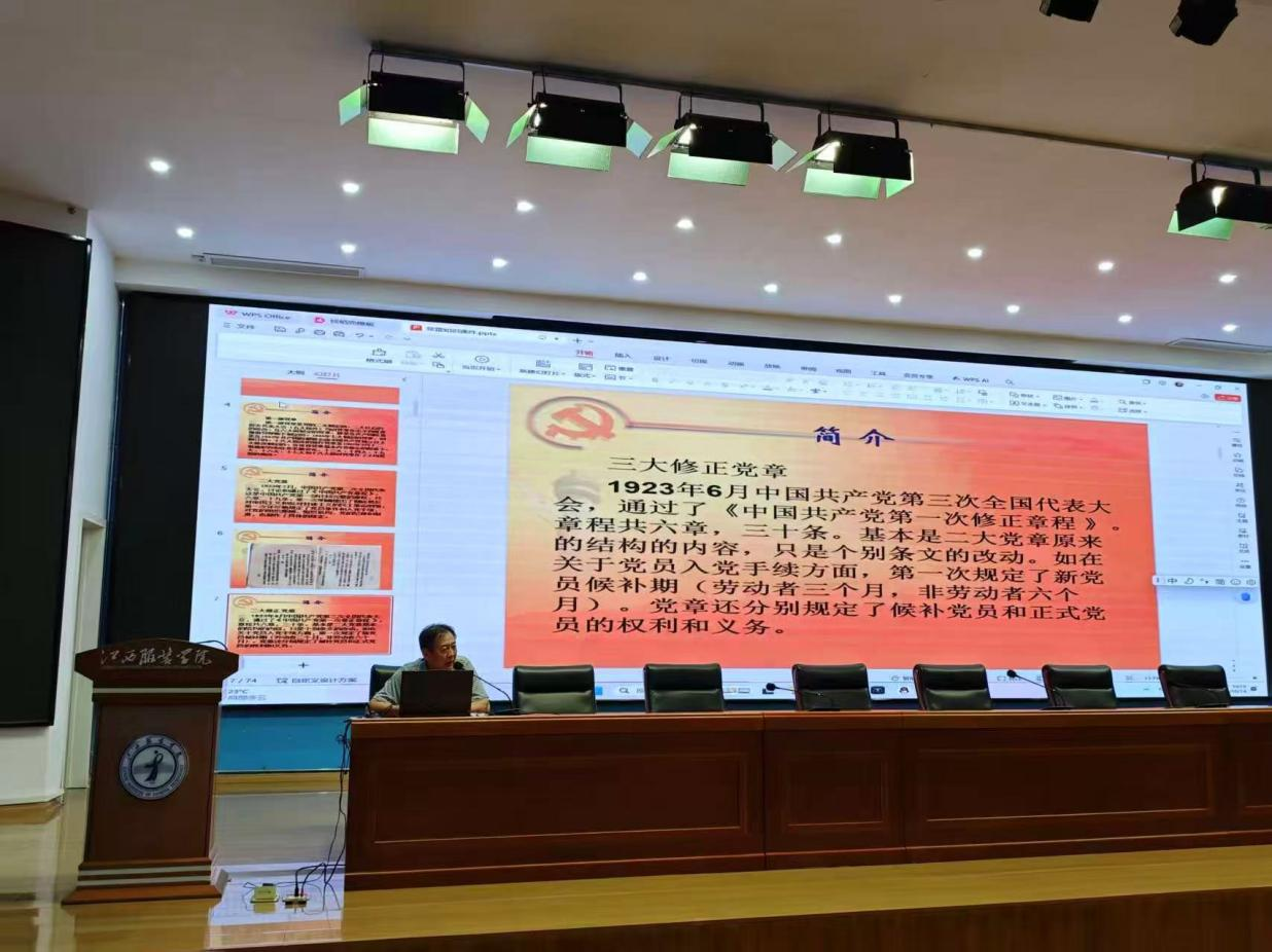 讲座伊始,彭波结合党的百年奋斗历程,围绕“党章是什么”,阐释了党章的重要地位,党章的每次修订都与党的事业发展同频共振。