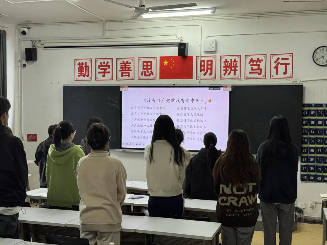 活动第一项,全体起立,奏唱《没有共产党就没有新中国》。