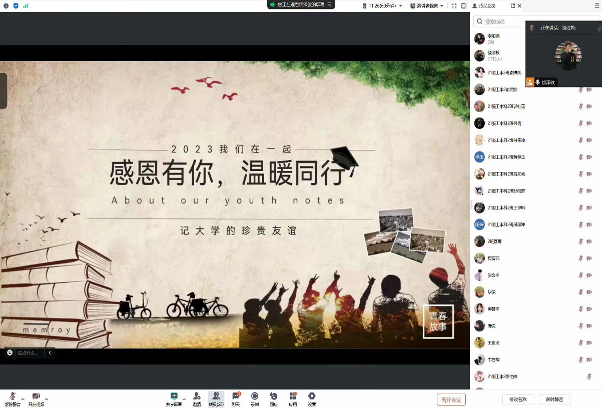 大三各班级召开了感恩有你,温暖同行”主题班会。大三的同学即将步入大四,虽然离别的脚步渐渐近了,但是班集体的力量还是同样重要。班长通过PPT演示,同学们强调了大学如何交友,如何获得友谊和如何珍视友谊。建立友谊,需要持续的行动。友谊诚可贵,一份珍贵的友谊不仅需要彼此具有较多的相似性,还要满足较近的空间距离,同时还要双方付出大量的时间与精力去维护。
