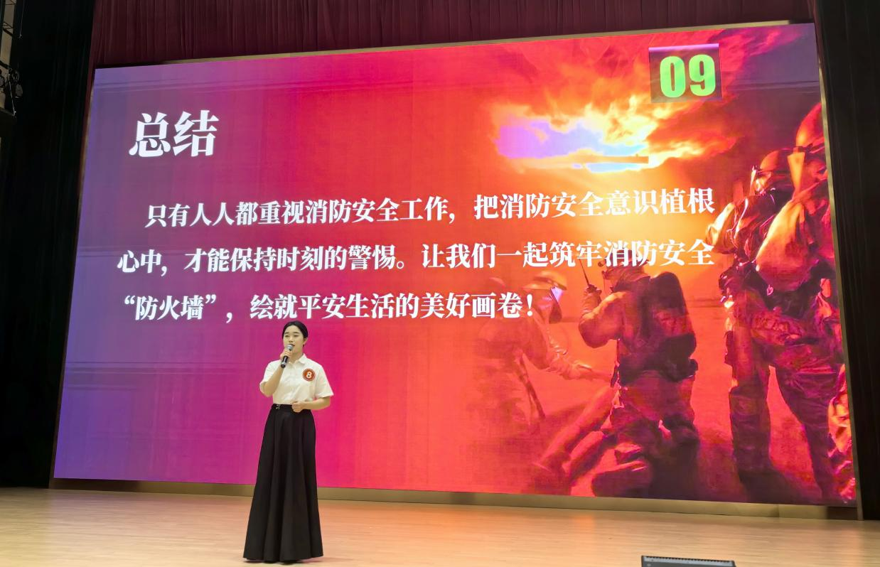大赛中,缪亚轩从新余火灾引入班会主题,语气中充满了对生命的敬畏和对安全的重视,新余火灾的悲剧给我们敲响了警钟,我们不能仅仅将其视为一个新闻事件,更要从中吸取教训。缪亚轩的声音铿锵有力,她的每一个字都落在我们的心上。她以生动的方式描述了火灾的可怕之处,让我们仿佛置身于那个危险的现场。同时,缪亚轩强调了防火教育的重要性,让大家明白预防火灾、保护自己和他人的生命安全是每个人的责任。让我们一起筑牢安全“防火墙”,绘就平安生活的美好画卷,