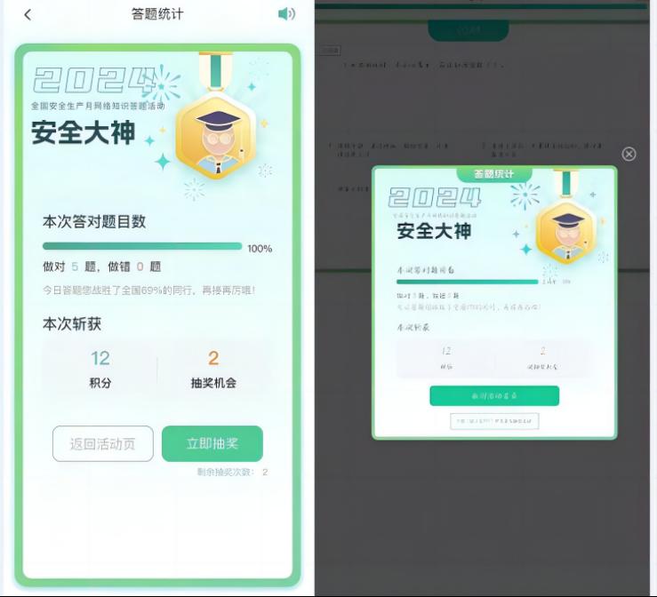 同时,学院组织师生积极参加全国安全生产月活动组委会办公室在全国范围内开展主题为“人人讲安全个个会应急”的网络知识答题活动,通过参与答题,检验师生们的安全知识储备和应急避险能力。