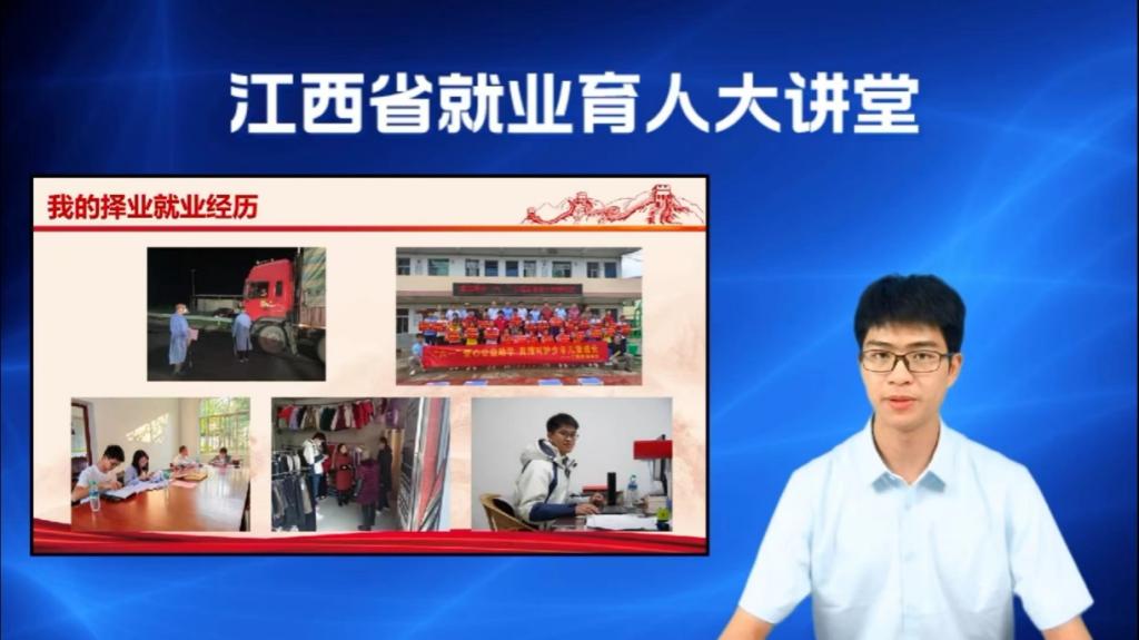 本次就业育人大讲堂直播课特邀了“全国高校毕业生基层就业卓越奖”“于都县新时代‘枫桥经验’赣州实践‘寻乌模式’先进个人”“于都县2023年度统战工作先进个人”“2023年度优秀工会工作者”,赣州市于都县段屋乡人民政府综治岗负责人、统战岗负责人、工会副主席肖兆斌。肖兆斌围绕《勇于担当、善于作为,以青春力量奋力书写为乡村振兴挺膺担当的青春篇章》作专题授课。
