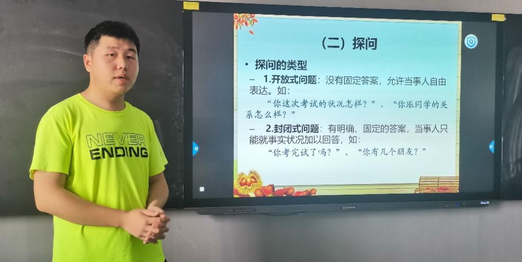 活动开始,由22服教本科1班心理委员罗立强通过PPT,向全体心理委员介绍了心理委员应该如何开展心理辅导。罗立强指出,心理委员应该深入学习心理学知识,确保理论基础扎实。要学会通过倾听、共情等方法,与同学们建立起信任的关系,让他们愿意分享内心的感受。能运用暗示、宣泄、倾听、共情等方法,为同学们提供有效的心理辅导,帮助他们解决问题。
