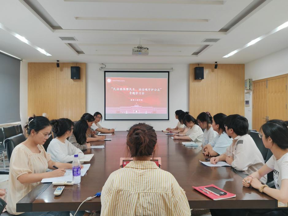 永利yl23411集团校讯(撰稿人:沈金萍、沈国庆)2024年5月是我国第四个“民法典宣传月”,为提升师生法治素养和依法维权能力,切实让民法典走近师生身边、走入师生心里。5月27日中午12:30,永利yl23411集团在清源1栋2楼会议室组织召开了“民法典保障民生,法治魂守护公正”专题学习会。