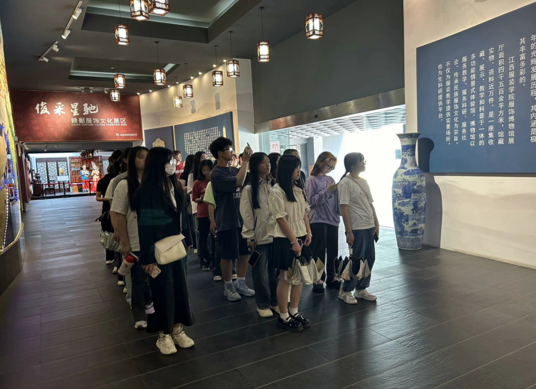 中华优秀传统文化是中华文明的智慧结晶和精华所在,是中华民族的根和魂,是我们在世界文化激荡中站稳脚跟的根基。同学们在讲解员的带领下,参观了服饰博物馆,感受到不同时期服饰的魅力。