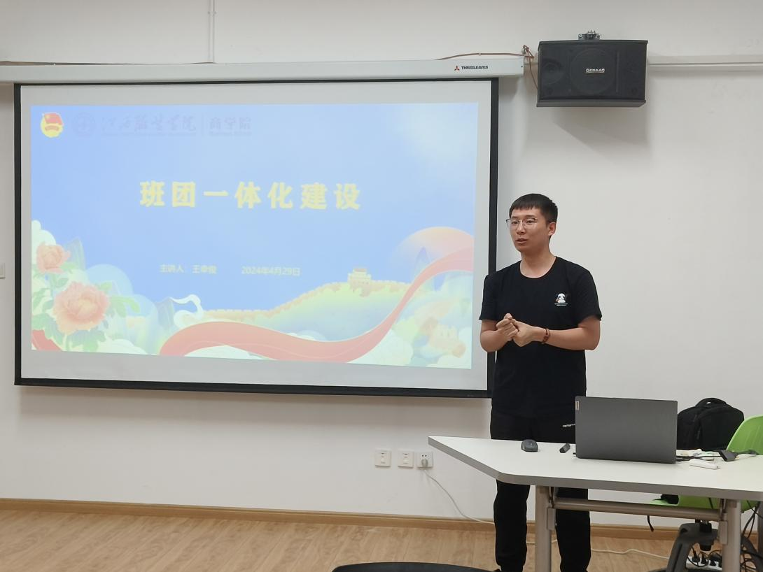 商学院辅导员王幸俊围绕班团一体化建设,重点分享了班级文化对于班级管理方面的作用,以及充分发挥团支部、班委会的核心作用。王幸俊就班级文化的深刻内涵展开阐述,他表示,班级文化是班级内部形成的凝聚价值观和思维方式的集合体,对于提高班级向心力和推动班团一体化建设起到至关重要的作用。他指出加强班级团支部与班委之间的联系是建设班团一体化的重要依据,班团一体化是实现自我管理的主要机制。