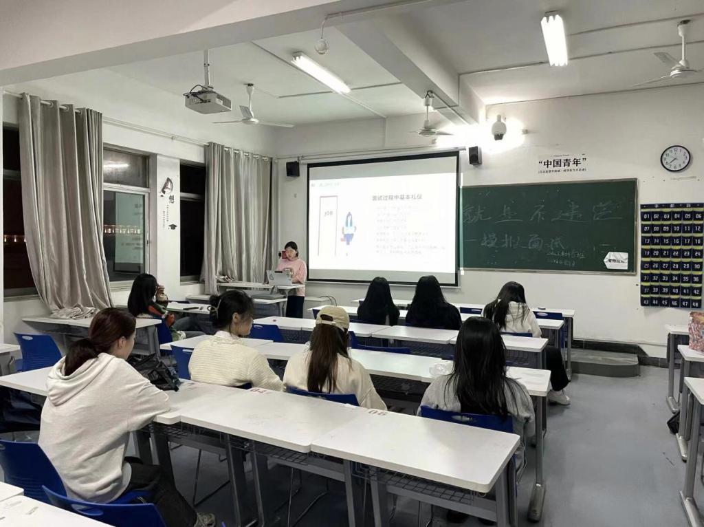 大三各班级召开了“就业不迷茫—模拟面试”主题班会。班会主要从面试内容、面试准备、面试方法三个方面展开,强调同学们需要提前了解自己的简历,熟悉自己的经历和特长,以便在面试中能够自信地展示自己。班长组织了模拟面试环节,让同学们亲身参与面试过程,体验面试的流程,增强面试技巧和应对能力。在应对难点方面,需要保持冷静,学会倾听并理解面试官的问题,此外还建议大家在面试中展示自己的思考过程和逻辑分析能力,以便使面试官更好地了解自己的能力和素质。