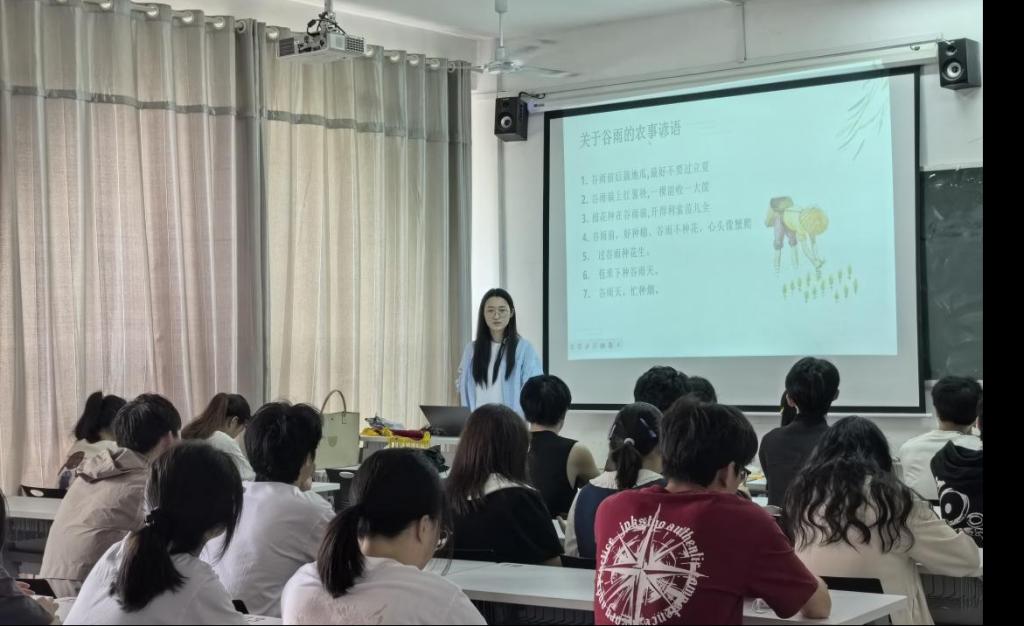蔡依帆还通过解读《春夜喜雨》这首诗的含义带领同学们走进谷雨了解谷雨。她通过播放视频和讲解,为同学们解释了节气的含义、二十四节气歌、谷雨的含义、谷雨的天气、关于谷雨的农事谚语与谷雨的五种习俗,加深了同学们对于谷雨的印象。