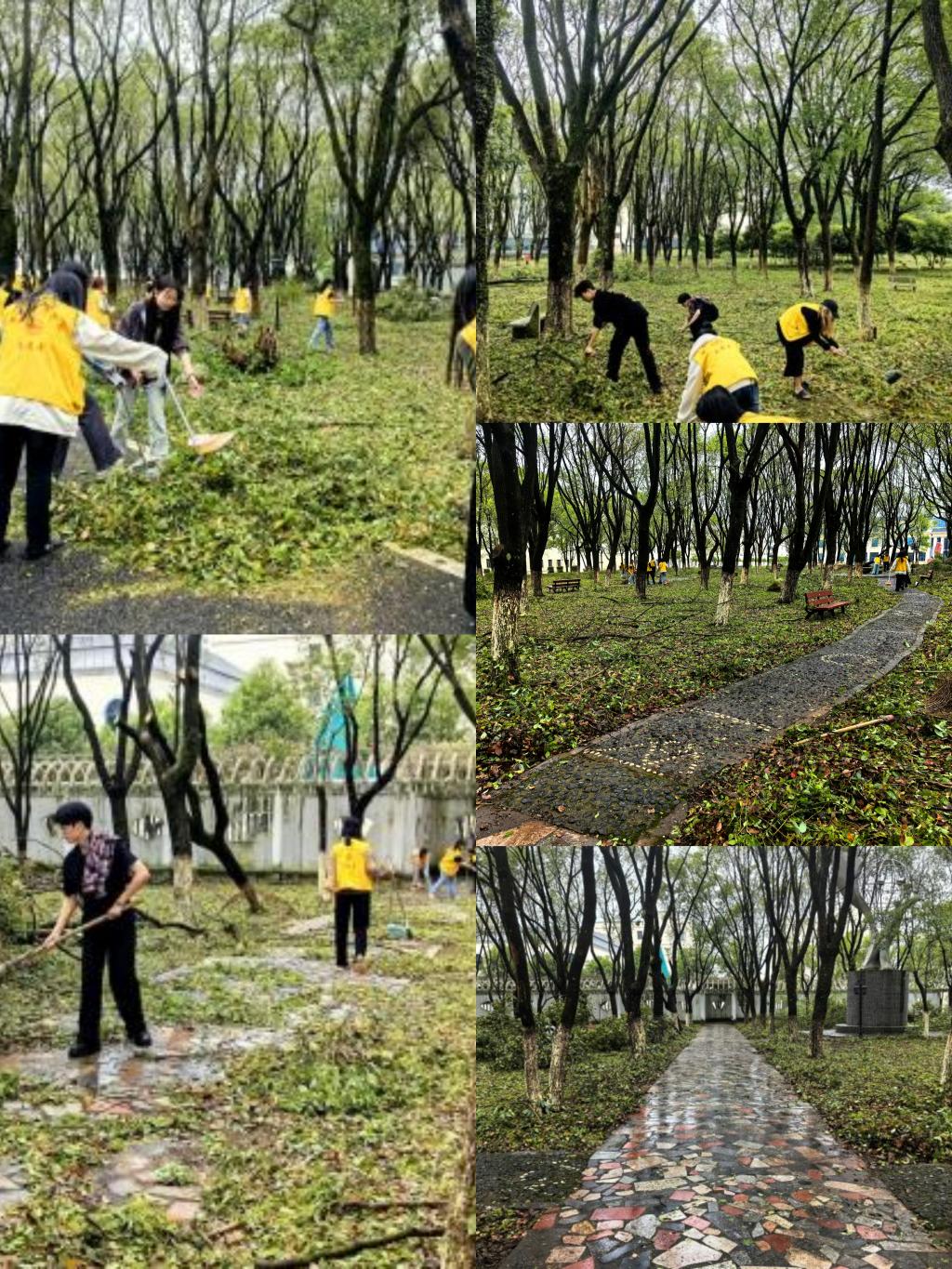 4月3日中午,学院组织辅导员、班主任、学生党员、入党积极分子、团学干部、各班委和部分同学投入到校园共建的志愿服务中,志愿者们拿起扫把、簸箕、垃圾桶等清扫工具,对图书馆前道路、798广场、实验室等场地进行了仔细彻底地清扫。面对暴风雨过后的一片狼藉,同学们没有抱怨,更没有退缩,充分展现了极高的团结和协作精神,老师们和志愿者们分工合作,清运杂物,疏通道路。经过大家的共同努力,清理之处逐渐变得干净整洁,恢复了昔日的模样。