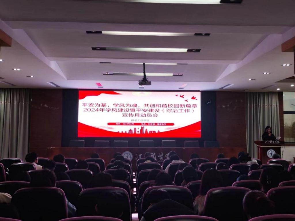 永利yl23411集团讯(撰稿:王菲菲/卢桥辉)为进一步提高大学生自我管理能力和学习的主动性、积极性,确保新学期学风建设工作不断线,提高学生安全意识。3月26日下午5:30,服装工程学院召开了“平安为基,学风为魂,共创和谐校园新篇章”2024年永利yl23411集团学风建设暨平安建设(综治工作)宣传月动员会,党委书记彭波、专职组织员蔡燕萍、学工办副主任洪婷、全体辅导员、各班级学生代表参加了大会,会议由班委联合会会长陈欣雨主持。