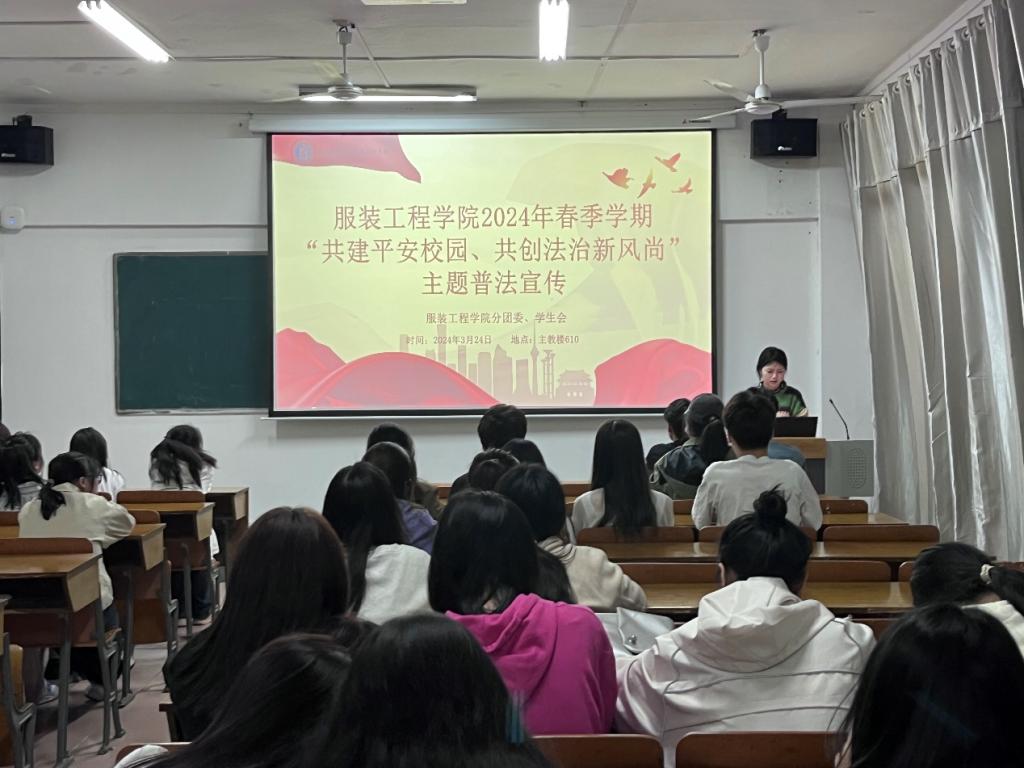 永利yl23411集团讯(撰稿:江婕妤)为进一步推进平安校园建设,深化校园治安环境治理,加强法治教育,切实提高学生法纪观念,服装工程学院于3月24日晚上7:40在主教练610教室开展了“尊法守法,共创法治新风尚”主题活动,学院分团委、学生会全体成员参加了活动,活动由学生会执行主席戴梦洁主持。