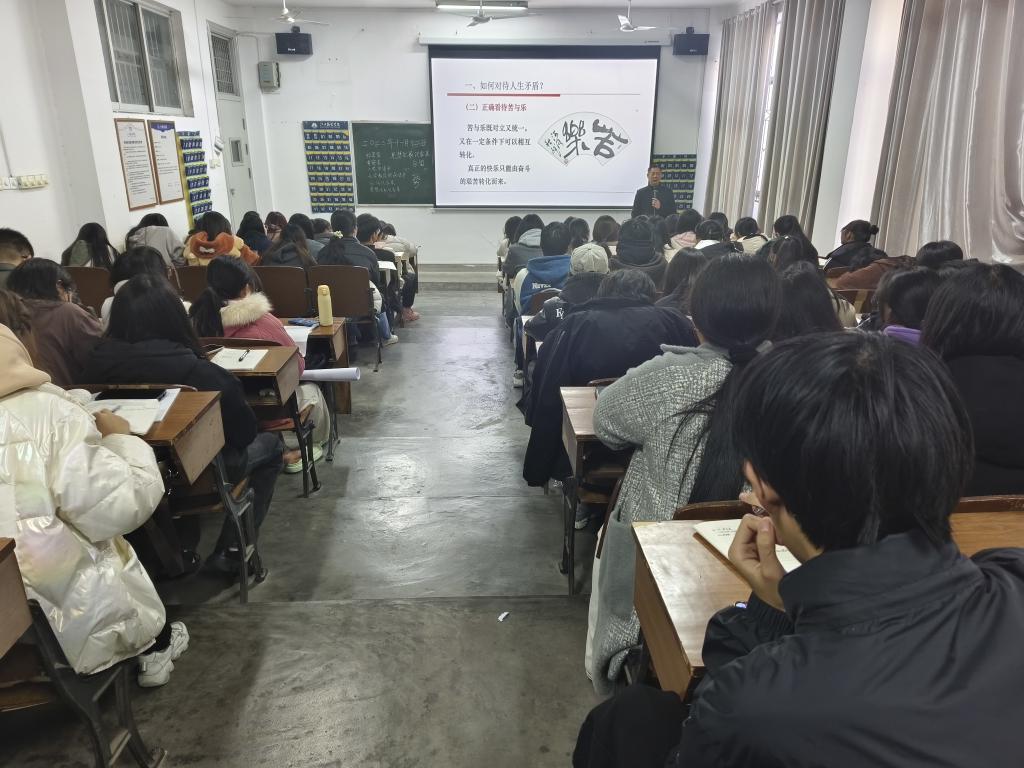彭波以“新时代大学生怎样才能创造有意义的人生”为主题,从“辩证对待人生矛盾”“反对错误人生观”“如何成就出彩人生”三个方面展开。彭波强调,“青马工程”培训班的学员是学院的团学骨干,应不断厚植爱国主义情怀,坚决反对个人主义和利己主义,要严于律己、以身作则,以正确的人生态度看待得与失、苦与乐、顺与逆、生与死、荣与辱。新时代青年应与历史同向,与祖国同行,与人民同在,应将自己的青春与人民的事业紧密相连,让青春在为祖国、为民族、为人民的不懈奋斗中绽放绚丽之花。
