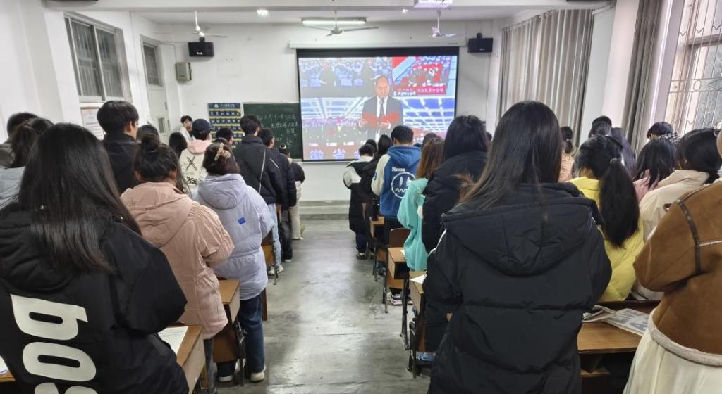 随后,师生们跟随主会场齐唱《宪法伴我们成长》,大家共同观看了第八届学生“学宪法、讲宪法”活动全国总决赛优秀选手的演讲展演,深刻理解贯彻宪法精神的重大意义,感受宪法的重要作用,以法制学习培养法治思维。